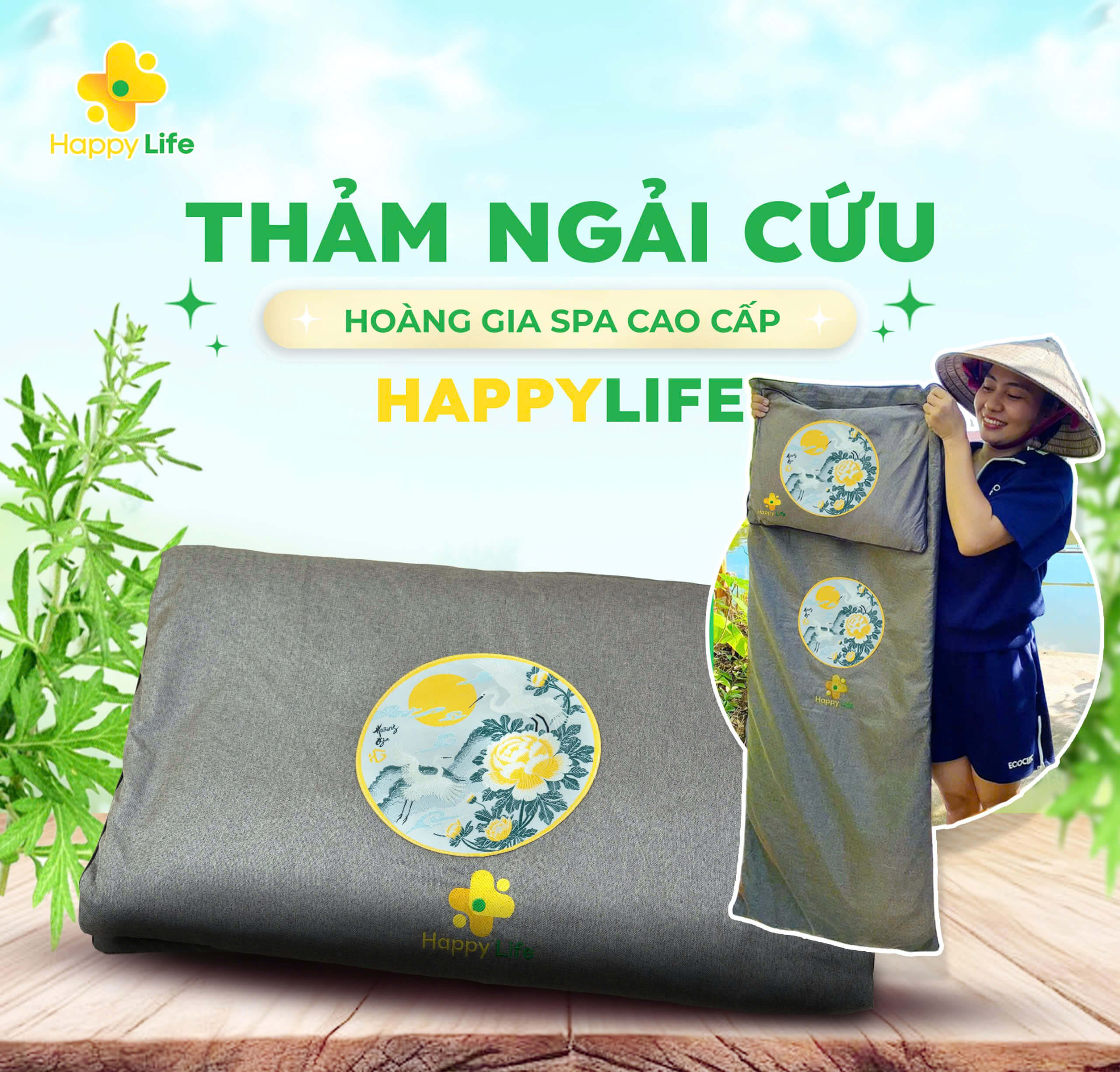 Thảm ngải cứu Hoàng Gia Spa cao cấp Happy Life dài 1m8 được thiết kế dành riêng cho khách hàng mong muốn một giải pháp chăm sóc sức khỏe an toàn – tiện lợi – hiệu quả ngay tại nhà.